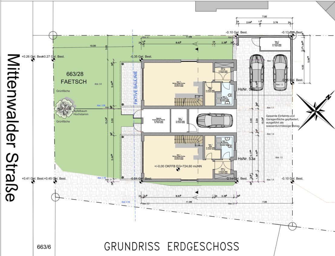 mit Planung von zwei verbundenen Einfamilienhäuser